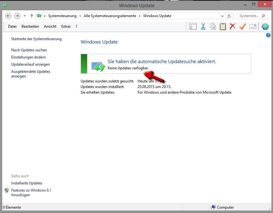 Sollten Sie das betreffende Update nicht auf dem Rechner haben, bleibt das Fenster jetzt leer.